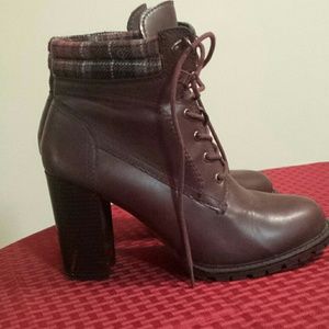 High-heeled Bergundy Faux-leather Booties