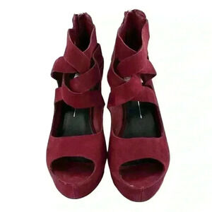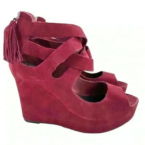 Dolce vita Jade womens ankle booties size 8 burgundy Nubuck leather crisscross wedge platforms