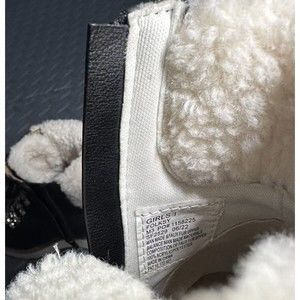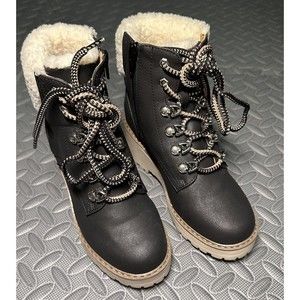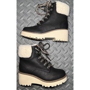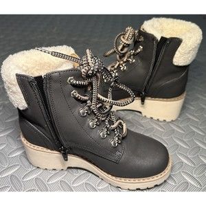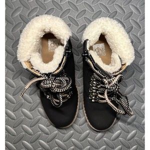 Dolce vita folksy black Faux Shearling ankle Girl block 2" heel combat boot Sz 1
