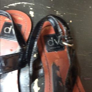 These black shiny leather women’s DV sandals are used but have so much life left in them. I never wore them this season and vowed to Let go of what could be used somewhere else. These are a classic design and very cute. My closets loss your gain.