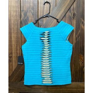 NWT Dolce Cabo aqua blue stretchy top with cutouts throughout the back.