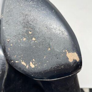 There are some minor flaws on the heels and there is a bit of dirt along bottom. Soles also show some wear.