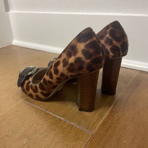 Displaying an exterior made from brown black calf hair and patent leather these pumps from Dolce and Gabbana appear unique and exceptional in every way.