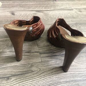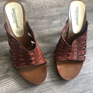 Gorgeous pair of designer DOLCE & GABBANA leather with wooden platform shoes.