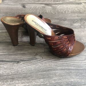 Gorgeous pair of designer DOLCE & GABBANA leather with wooden platform shoes.