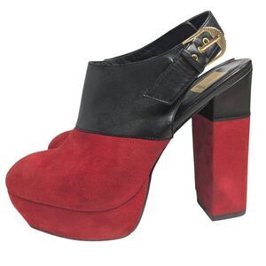 Dolce Vita Red & Black colorblock Platform Slingback block heels womens 10