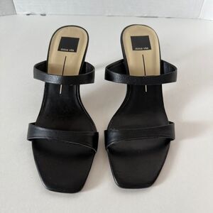 Dolce Vita Women’s Genora Black Leather Heels Square Toe Slide Sandals Size 9.5.