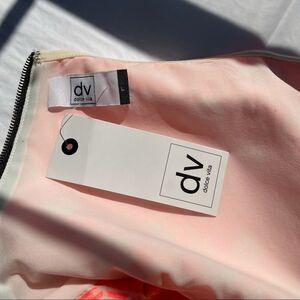 New with tags Dolce Vita X Revolve Amica Neon Tapestry strapless dress size large. Neon coral tapestry printed cotton/polyester/nylon material with polyester lining. Contrast color waist tie with exposed zipper back closure. Pleated skirted waist with tiered skirt. Sweetheart Strapless neckline. Stunning on!