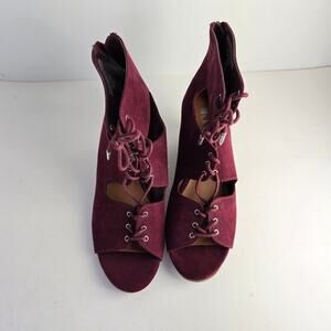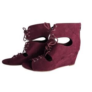 Dolcetta Maroon Faux Suede Open Toed Wedges with Laces Size 7.5