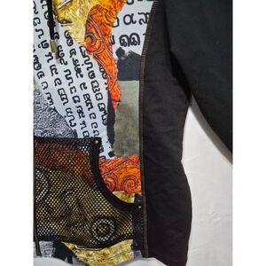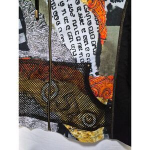 This is a vibrant, are-inspired full-zip jacket by Dolcezza, featuring a unique collage of patterns and colors. The jackets combines artistic flair with comfort, making it a standout piece for any wardrobe. Like New Condition.