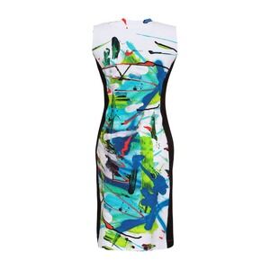 Dive into summer with the eye-catching V-Neck Summer Dress by Dolcezza. This stunner, with its abstract art design on the front and back, is a walking piece of art. The chic black panels on the sides aren't just fashionable; they're figure-flattering too, sculpting a slimmer silhouette. With a stylish V-neck, midi length, and breezy short sleeves, this dress promises to be your new style crush. Slip into this Dolcezza masterpiece and let the compliments roll in!