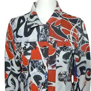 Dolcezza Simply Art Lovely Lovers Button Up Jacket Size M Red White Abstract