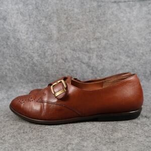 Used Dolcis Shoes Womens 7.5 Monk Strap Oxford Loafers Wingtip Leather Brown Retro