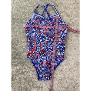 Good condition, pre-owned. Fireworks, Patriotic, 4th of July, Summer, USA, United States of America, One Piece, Tie Dye, Training, Swim. K0030