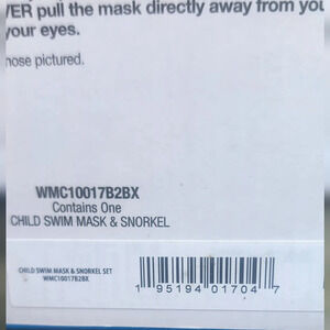 Angled-barrel snorkel features a built-in mask retainer. Latex-free mask and snorkel ensure no skin irritation. Ages 3 and up