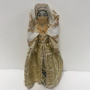 Doll. Plastic. Shoes have to be glued on. Some spots shown in last pictures.
