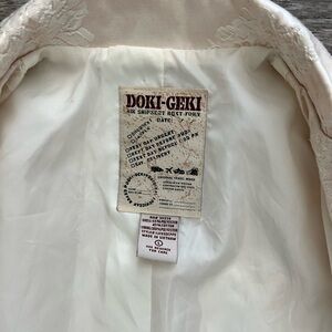 Doki Geki cream jacket with cream and white embroidery all over long blazer jacket coat, this is size large. Fully lined inside.