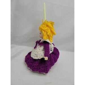 Doll Handmade Crochet Duster Cover Purple Yarn Soft Face 14" Cottage Core