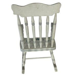 Doll Rocking Chair Hand Painted Accessory Vintage White Pale Blue Gingham Plaid