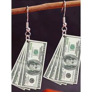 Ladies super cute dollar bill dangle statement earrings. New with tags. Made from hypoallergenic nickel and lead free metal. Excellent condition.