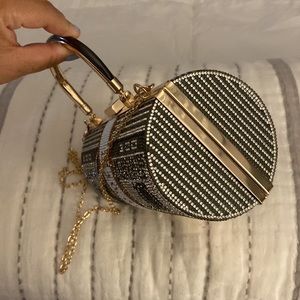 Dollar Rhinestone Bag with handle and gold chain.