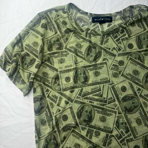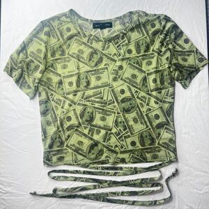 Dollar Bill Shirt Cropped Baby Tee Mesh Disco Benjamins Club Bartender Sheer