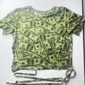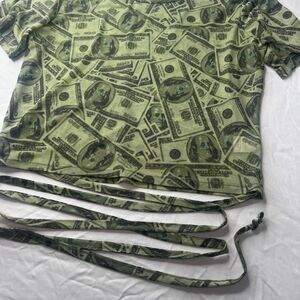 Dollar Bill Shirt Cropped Baby Tee Mesh Disco Benjamins Club Bartender Waist Ties