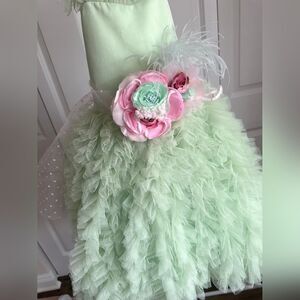 Charming mint green ruffled girls dress perfect for special occasions. Delight in the soft, fluffy design that adds a touch of elegance.