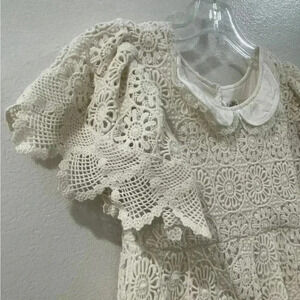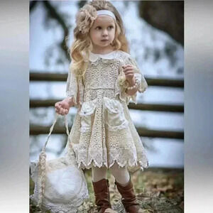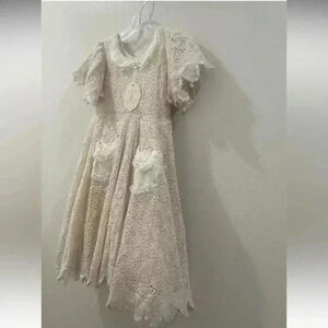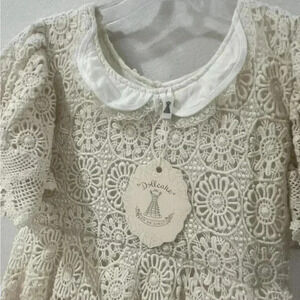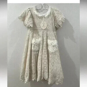 Cream lace dress is new with tags, very beautiful and has a timeless look but also a vintage look also.