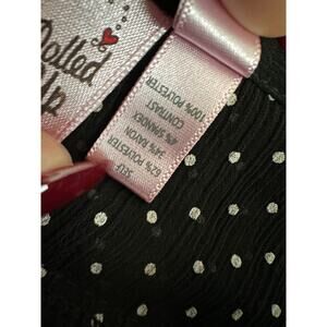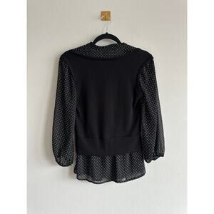 Dolled Up Black Polka Dot Chiffon Layered Blouse Sheer Sleeves Retro M
