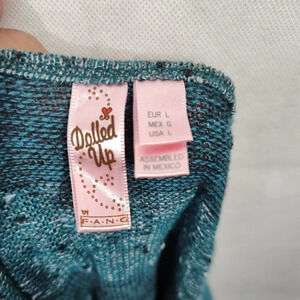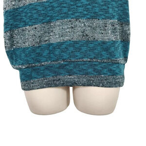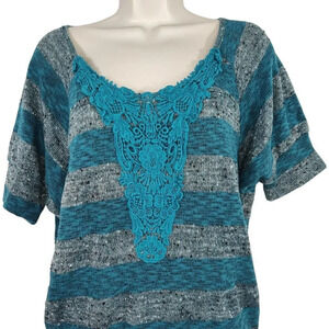 Dolled Up Blue-Green Gray Stripe Knit Top Sweater Women Size L Short Sleeve