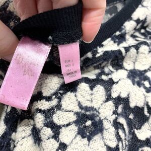 Dolled Up Sheer Sweater Black & Ivory Floral Round Neck Long Sleeve sz Large