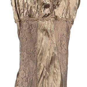 Dolled Up Womens Satin Babydoll Top M Metallic Gold Beaded Lace Coquette Y2K