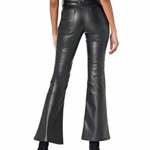 Sleek black leather pants with a stylish flare. Ideal for a bold fashion statement.