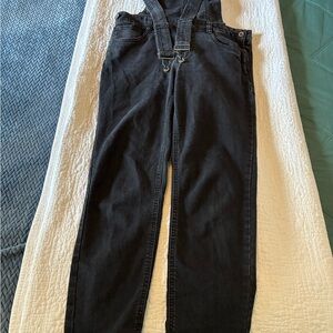DOLLHOUSE Classic black overall denim jeans. Stylish and versatile. Perfect for any outfit. In good used condition and from a non smoker/ no pet home. Size wears like a women’s 8/ junior size 11. Refer to photos for sizing and fit.