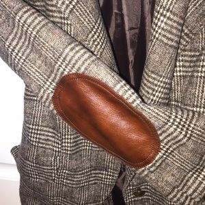 EUC!! Adorable wool-blend blazer! Vegan-leather elbow pads and shoulders. Beautiful buttons on front and cuffs. Well taken care of piece!