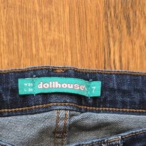 These Dollhouse skinny jeans in a rich blue hue offer a sleek and modern fit. The jeans feature a classic dark blue denim with subtle shade variations for a worn-in look. Highlighted by contrasting stitching, they provide a stylish edge to any casual ensemble.