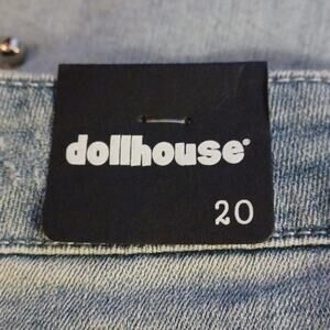 Dollhouse Denim Distress Jeans Skirt With Silver & Pearly Beads. Size 20