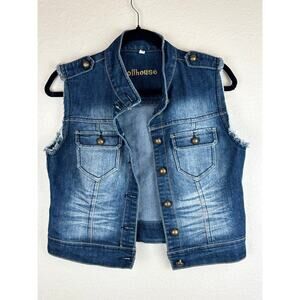 Dollhouse Distressed Denim Vest with Brass Toned Buttons and Frayed Seams Sz. S
