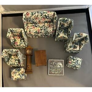 Dollhouse Furniture Living Room 10 pc Loveseat ARm Chair End Table stool Clock