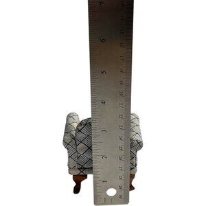 Add a touch of vintage charm to your dollhouse with this elegant blue and white checkered sofa and armchair set, featuring classic wooden legs.