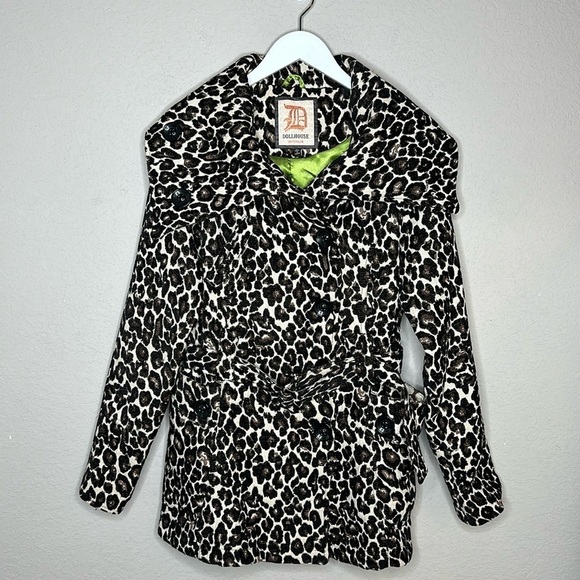 Dollhouse Hooded Cheetah Print Coat Size Large