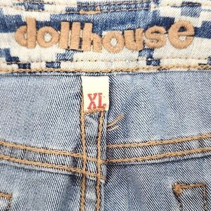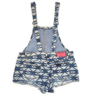 Dollhouse Juniors Size XL Southwestern Print Jean Overalls Shortalls Western Y2K