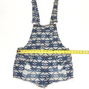 Dollhouse Southwestern Print Blue Denim Jean Distressed Bib Overalls Shortalls 90s Thrashed
