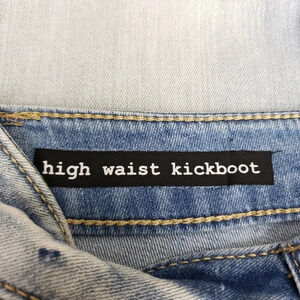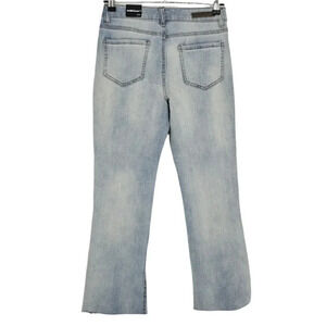 Dollhouse Kickboot Jeans High Rise Cropped Light Wash Denim Raw Hem