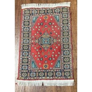 Dollhouse Large Rug Fabric 9" x 6" Burgundy Green 1:12 Scale Miniature. In very good condition. See photos for details. I ship on the same or next day from a smoke-free home. I make every effort to describe items honestly and price them fairly. Feel free to make an offer or ask any questions. Im happy to help.