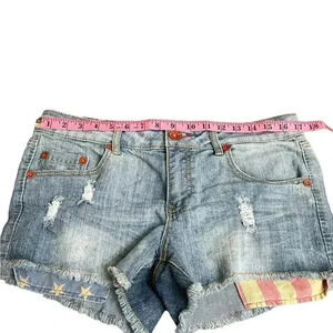 Dollhouse Light Washed Distressed Stars Stripes Pocket Shorts Juniors size 13