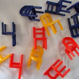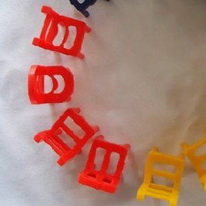 Dollhouse Mini Nursery Child Size 13 Plastic Chairs Primary Colors Red Blue Yellow