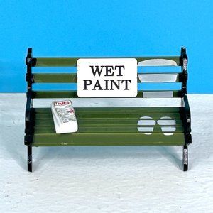 RARE UNIQUE Dollhouse Miniature 2.5" Green Plastic Bench Yard Furniture Accessory WET PAINT SIGN