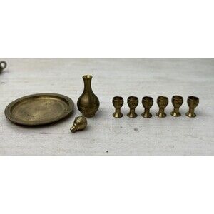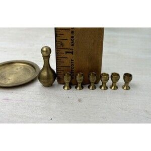 Dollhouse Miniature 8 pc Brass Wine Set, Tray Rare Vtg Goblets & Decanter